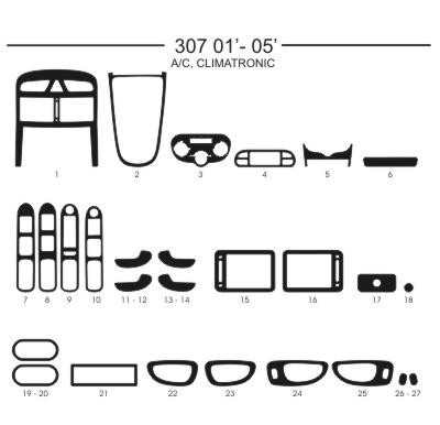 Dekor interiéru Peugeot 307, 2001-2005 s klimatizací včetně climatronic, černý
