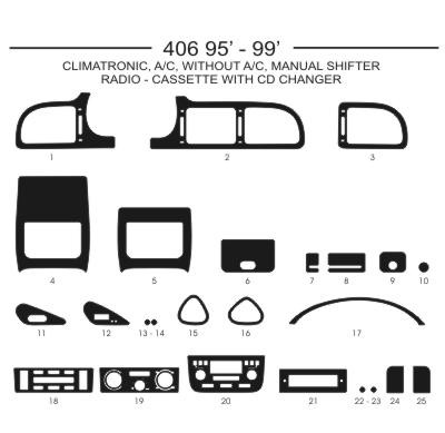 Dekor interiéru Peugeot 406, 1995-1999, s man. klimou i bez klimatizace, manuální řazení, radio na kazety bez CD, carbon standart