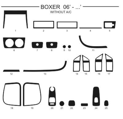 Plastický samolepící pryskyřicový dekor o síle 0,2-0,5mm. Jedná se o přesné výrobky na každý model vozu. Vzhledem k tomu, že se tyto výrobky vyrábějí na zakázku a objednávají ze zahraničí, prosíme o trpělivost. Dodací lhůta je cca 7-18dnů. Každý díl je samolepící a přesně vymodelován na danou část interiéru vozu. Polep je zalit v čiré pryskyřici silné cca 0,2-0,5mm, odolné poškrábání, či mytí chem. prostředky. Nevybledává, jako samolepka. Prosíme při objednání si dávejte pozor u středového dílu, který je u stejné značky vozu i vícekrát různý, podle výbavy. Podívejte se zda máte, či nemáte manuální klimatizaci, nebo climatronic. Rozdíly jsou někdy nepatrné, ale jsou. Například jeden otvor navíc pro spínač klimy, nebo jiné uspořádaní ovladačů u originálního autorádia, změna autorádia, manuální, či automatická převodovka apd. Sada je nalepena na folii ze které se daný díl odlepí a po zahřátí se lepí na určené místo. Změňte interiér svého vozu k nepoznání. Cena je za celou sadu, dle černobílého obrázku. Vzhledem k výrobě na zakázku, můžeme u starších a netipických vozů požadovat zálohovou platbu předem.