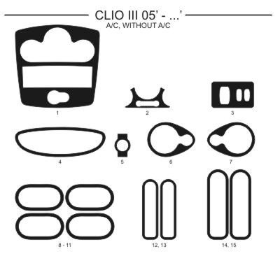Plastický samolepící pryskyřicový dekor o síle 0,2-0,5mm. Jedná se o přesné výrobky na každý model vozu. Vzhledem k tomu, že se tyto výrobky vyrábějí na zakázku a objednávají ze zahraničí, prosíme o trpělivost. Dodací lhůta je cca 7-18dnů. Každý díl je samolepící a přesně vymodelován na danou část interiéru vozu. Polep je zalit v čiré pryskyřici silné cca 0,2-0,5mm, odolné poškrábání, či mytí chem. prostředky. Nevybledává, jako samolepka. Prosíme při objednání si dávejte pozor u středového dílu, který je u stejné značky vozu i vícekrát různý, podle výbavy. Podívejte se zda máte, či nemáte manuální klimatizaci, nebo climatronic. Rozdíly jsou někdy nepatrné, ale jsou. Například jeden otvor navíc pro spínač klimy, nebo jiné uspořádaní ovladačů u originálního autorádia, změna autorádia, manuální, či automatická převodovka apd. Sada je nalepena na folii ze které se daný díl odlepí a po zahřátí se lepí na určené místo. Změňte interiér svého vozu k nepoznání. Cena je za celou sadu, dle černobílého obrázku. Vzhledem k výrobě na zakázku, můžeme u starších a netipických vozů požadovat zálohovou platbu předem.