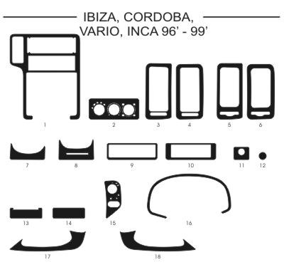 Plastický samolepící pryskyřicový dekor o síle 0,2-0,5mm. Jedná se o přesné výrobky na každý model vozu. Vzhledem k tomu, že se tyto výrobky vyrábějí na zakázku a objednávají ze zahraničí, prosíme o trpělivost. Dodací lhůta je cca 7-18dnů. Každý díl je samolepící a přesně vymodelován na danou část interiéru vozu. Polep je zalit v čiré pryskyřici silné cca 0,2-0,5mm, odolné poškrábání, či mytí chem. prostředky. Nevybledává, jako samolepka. Prosíme při objednání si dávejte pozor u středového dílu, který je u stejné značky vozu i vícekrát různý, podle výbavy. Podívejte se zda máte, či nemáte manuální klimatizaci, nebo climatronic. Rozdíly jsou někdy nepatrné, ale jsou. Například jeden otvor navíc pro spínač klimy, nebo jiné uspořádaní ovladačů u originálního autorádia, změna autorádia, manuální, či automatická převodovka apd. Sada je nalepena na folii ze které se daný díl odlepí a po zahřátí se lepí na určené místo. Změňte interiér svého vozu k nepoznání. Cena je za celou sadu, dle černobílého obrázku. Vzhledem k výrobě na zakázku, můžeme u starších a netipických vozů požadovat zálohovou platbu předem.