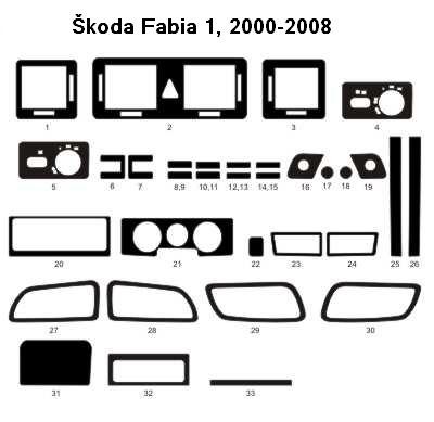 Dekor interieru Škoda Fabia I (1) 2000-2008, světlý mahagon