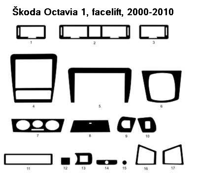 Plastický samolepící pryskyřicový dekor o síle 0,2-0,5mm. Jedná se o přesné výrobky na každý model vozu. Vzhledem k tomu, že se tyto výrobky vyrábějí na zakázku a objednávají ze zahraničí, prosíme o trpělivost. Dodací lhůta je cca 7-18dnů. Každý díl je samolepící a přesně vymodelován na danou část interiéru vozu. Polep je zalit v čiré pryskyřici silné cca 0,2-0,5mm, odolné poškrábání, či mytí chem. prostředky. Nevybledává, jako samolepka. Prosíme při objednání si dávejte pozor u středového dílu, který je u stejné značky vozu i vícekrát různý, podle výbavy. Podívejte se zda máte, či nemáte manuální klimatizaci, nebo climatronic. Rozdíly jsou někdy nepatrné, ale jsou. Například jeden otvor navíc pro spínač klimy, nebo jiné uspořádaní ovladačů u originálního autorádia, změna autorádia, manuální, či automatická převodovka apd. Sada je nalepena na folii ze které se daný díl odlepí a po zahřátí se lepí na určené místo. Změňte interiér svého vozu k nepoznání. Cena je za celou sadu, dle černobílého obrázku. Vzhledem k výrobě na zakázku, můžeme u starších a netipických vozů požadovat zálohovou platbu předem.