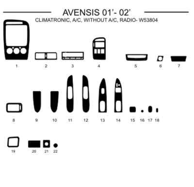 Dekor interiéru Toyota Avensis, 2001-2002, climatronic, manuální klima, bez klimatizace, radio W53804, červený