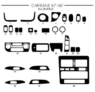 Dekor interiéru Toyota Carina E, 1997-1998, všechny modely, AL hliník