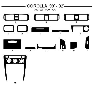 Dekor interiéru Toyota Corolla, 1999-2002, s klimatizací, bez klimatizace, modrý