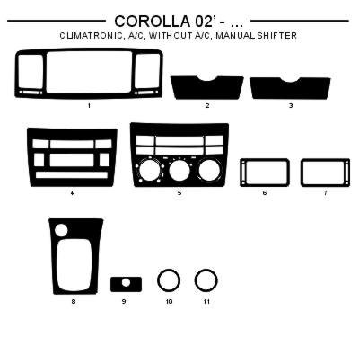 Dekor interiéru Toyota Corolla, 2002-, climatronic, s klimatizací, bez klimatizace, manuální řazení, černý