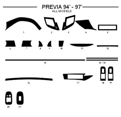 Dekor interiéru Toyota Previa, 1994-1997, všechny modely, žlutý