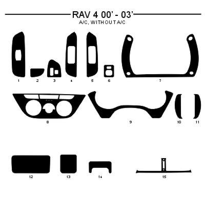 Dekor interiéru Toyota Rav 4, 2000-2003, s klimatizací, bez klimatizace, černý