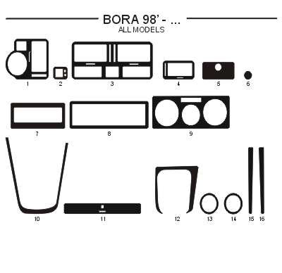 Dekor interiéru Volkswagen Bora 1998-2005, černý