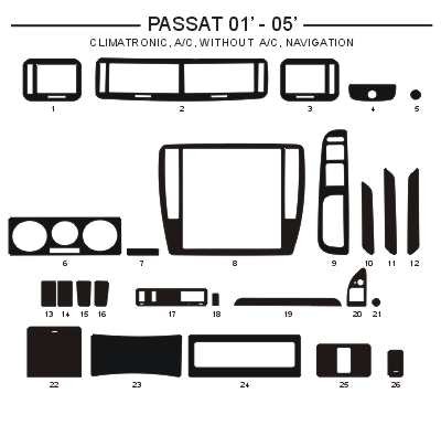 Dekor interiéru Volkswagen Passat 2001-2004 climatronic, man. klima, bez klimi, navigace, modrý