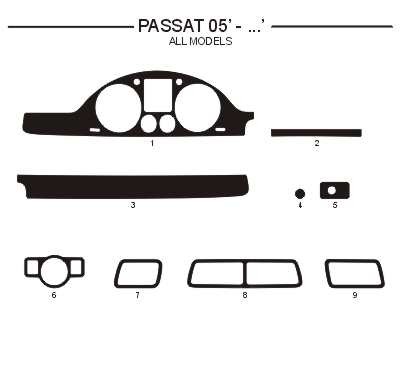 Dekor interiéru Volkswagen Passat 2005- horní dekory, červený