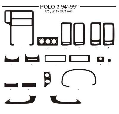 Dekor interiéru Volkswagen Polo 1994-1999, bez klimatizace, s manuální klimatizací, červený