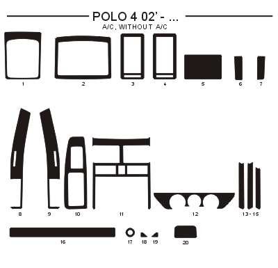 Dekor interiéru Volkswagen Polo 2002-2005, bez klimatizace, s manuální klimatizací, světlý mahagon