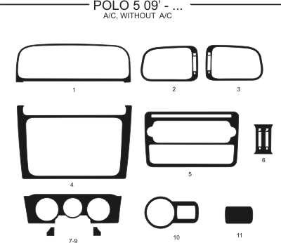 Dekor interiéru Volkswagen Polo 2009-, s klimatizací, bez klimatizace, carbon plus