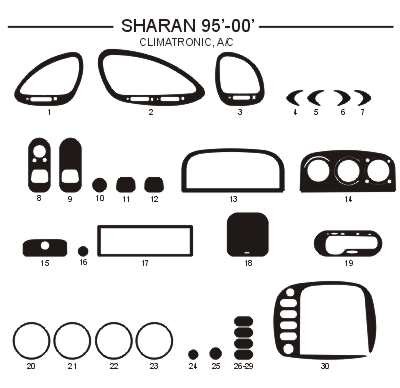 Dekor interiéru Volkswagen Sharan 1995-2000 climatronic, manuál. klima, černý