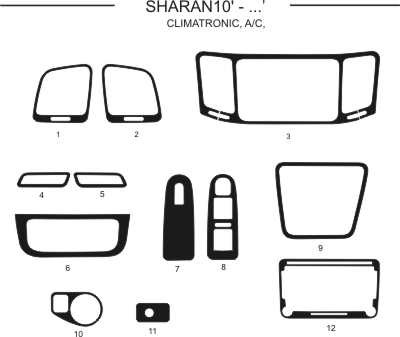 Dekor interiéru Volkswagen Sharan 2010-, climatronic, man. klimatizace, modrý