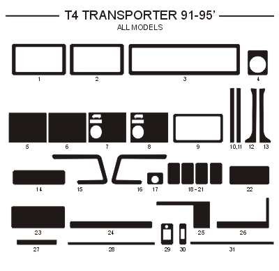 Plastický samolepící pryskyřicový dekor o síle 0,2-0,5mm. Jedná se o přesné výrobky na každý model vozu. Vzhledem k tomu, že se tyto výrobky vyrábějí na zakázku a objednávají ze zahraničí, prosíme o trpělivost. Dodací lhůta je cca 7-18dnů. Každý díl je samolepící a přesně vymodelován na danou část interiéru vozu. Polep je zalit v čiré pryskyřici silné cca 0,2-0,5mm, odolné poškrábání, či mytí chem. prostředky. Nevybledává, jako samolepka. Prosíme při objednání si dávejte pozor u středového dílu, který je u stejné značky vozu i vícekrát různý, podle výbavy. Podívejte se zda máte, či nemáte manuální klimatizaci, nebo climatronic. Rozdíly jsou někdy nepatrné, ale jsou. Například jeden otvor navíc pro spínač klimy, nebo jiné uspořádaní ovladačů u originálního autorádia, změna autorádia, manuální, či automatická převodovka apd. Sada je nalepena na folii ze které se daný díl odlepí a po zahřátí se lepí na určené místo. Změňte interiér svého vozu k nepoznání. Cena je za celou sadu, dle černobílého obrázku. Vzhledem k výrobě na zakázku, můžeme u starších a netipických vozů požadovat zálohovou platbu předem.