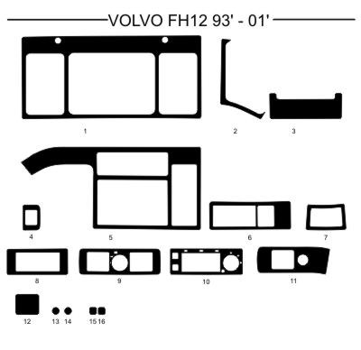 Dekor interiéru Volvo FH12, model 1993-2001, žlutý