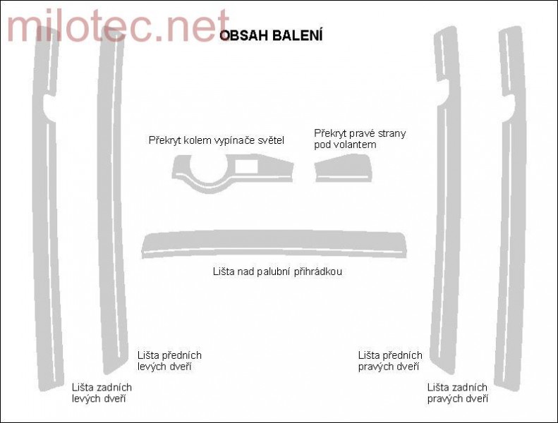 • sedmidílná sada interiérových dekorativních lišt palubní desky a dveří