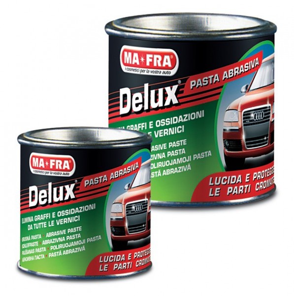 Pro vyřešení těchto "malých" problémů vytvořila firma MA-FRA středně jemně abrasivní brusnou pastu DELUX, která během několika minut odstraní malé nedostatky a oxidace z veškerých lakovaných povrchů.