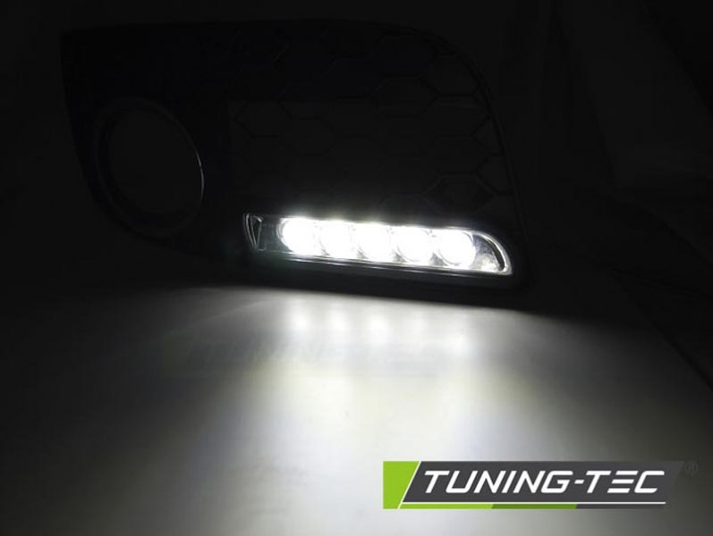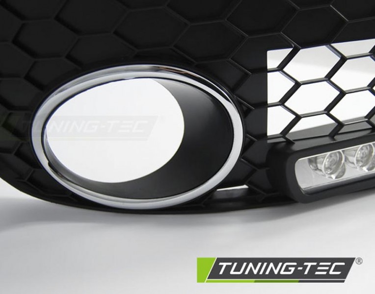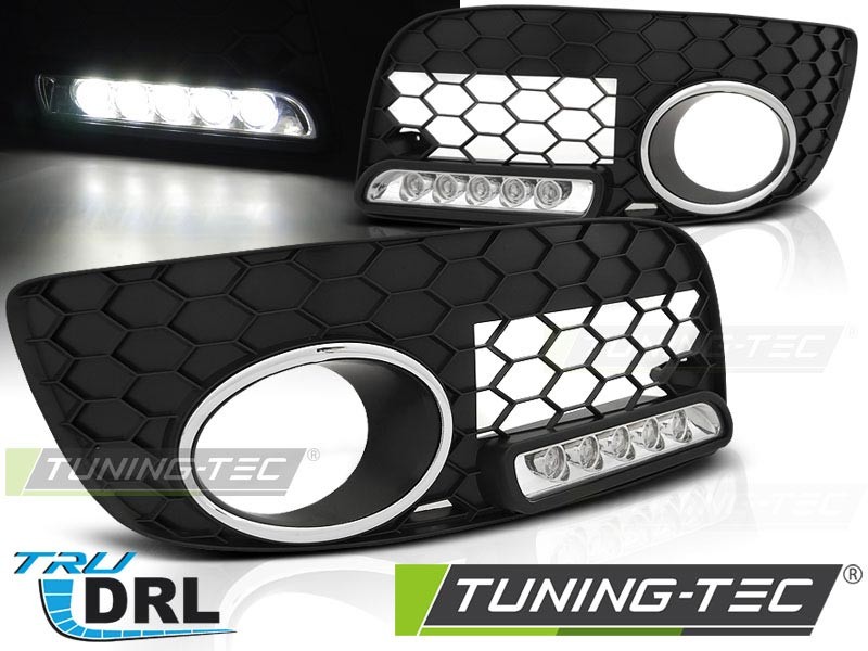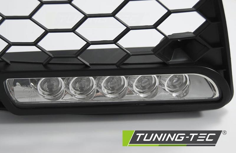 Led denní světlomety zabudované v mřížce pro nárazníky GTI. Dodáváno včetně kabeláže a automatického spuštění startu. Cena za pár včetně příslušenství. Kompitabilní s řídící jednotkou bez hlášení chyb. 5+5 Super bílých LED. Plně homologováno pro provoz.
