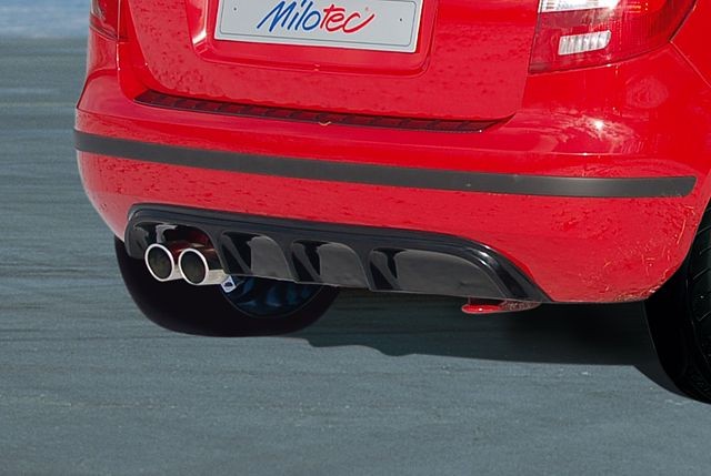 Difuzor zadního nárazníku pro vozy Škoda Fabia II. Limousine je vyroben z ABS materiálu s povrchem černé metalízy, který je UV stabilní a není třeba lakovat. Lze však i přelakovat do barvy vozu. Montáž je realizována lepením a šroubováním (zespod - viz. montážní návod v přiložených souborech v detailním popisu). pasuje i na facelift
