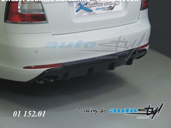 Difuzor zadního nárazníku je vyroben z plastu ABS v černém drsném provedení. Montáž se provádí nalepením na seriový nárazník. Výrobek má atest 8SD pro provoz a velice přesné zpracování. Montážní materiál je součástí výrobku. Dokonale změní zadní partie vozu.