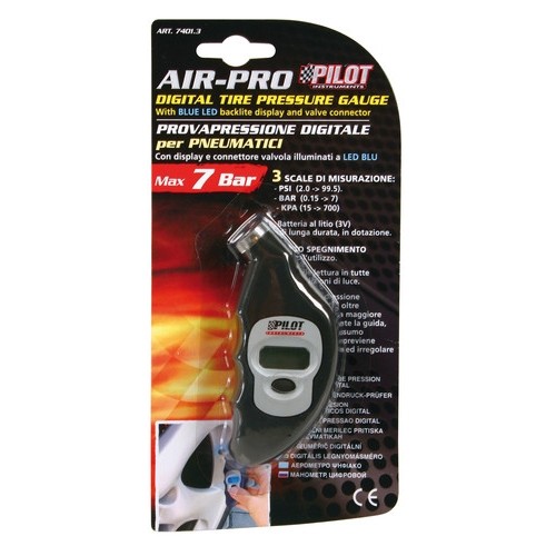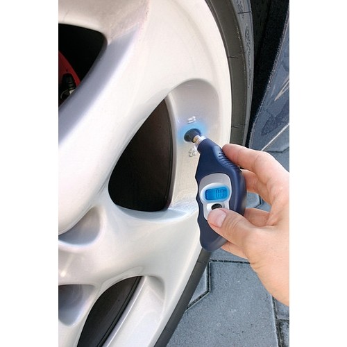 Digitální pneuměřič pro měření tlaku v pneumatikách automobilů. Volitelně zobrazení tlaku v jednotkách BAR, kPa, PSI. Tento pneuměřič je vybaven modrým osvitem displeje a zároveň osvitem ventilku pro snadné měření i za snížené viditelnosti.