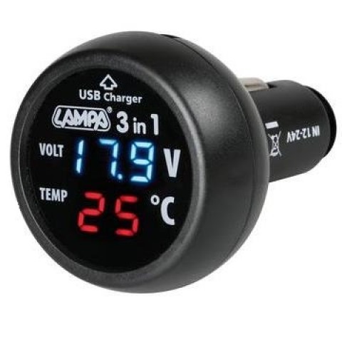 Tester baterie SMART-PLUG s vnitřním teploměrem a USB portem od italské firmy Lampa.