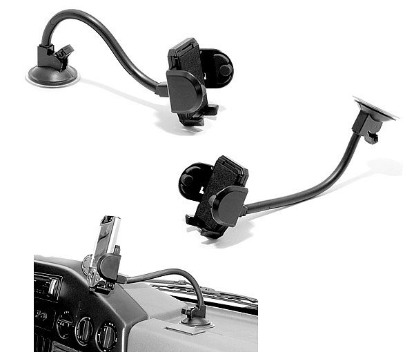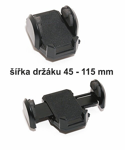 Univerzální držák s dlouhým ramenem, které lze ohýbat dle potřeby. Připevnění pomocí silné přísavky. Široký rozsah nastavení úchytu (45 - 115 mm) umožňuje do držáku umístit i širší přístroje jako např. GPS navigace, přenosné počítače PDA nebo vetší mobilní telefony.