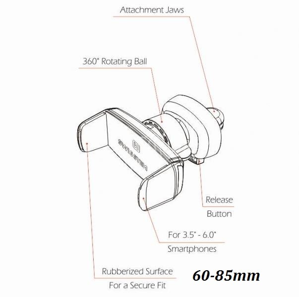 Telefon, či jiné zařzení drží díky ramenům, které se stahují k sobě vestavěnou pružinou.