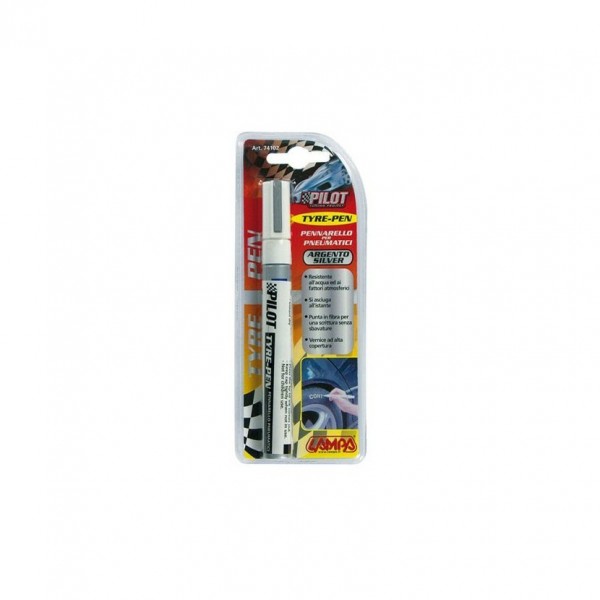 Popisovač pneu. Fix na vybarvení nápisu na pneumatikách a apd. Stříbrná barva. Před použitím je zapotřeby hrot fixi namačkat přes pružinu po dobu, než hrot naseje barvu.