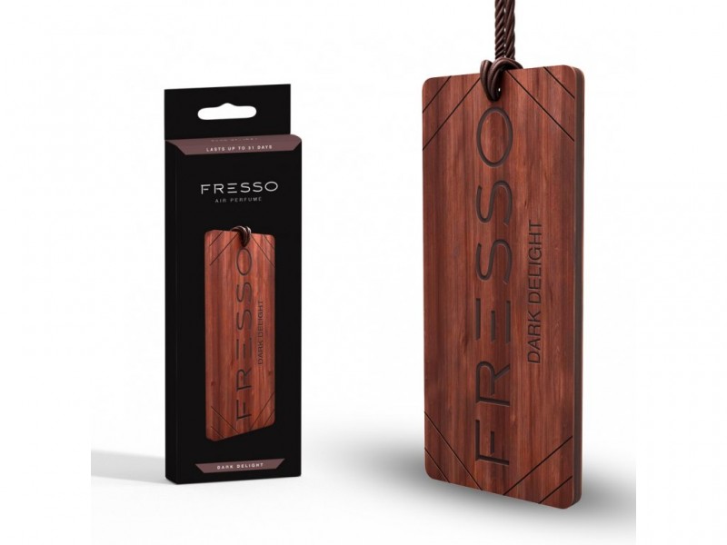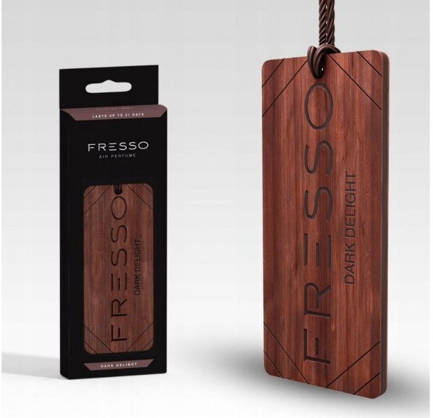 Elegantní dřevěný přívěsek s vůní "Dark Delight", který se dá pověsit za koženou pletenou šňůrku na zpětné zrcátko v autě. Jedná se o sofistikované příslušenství, které dokonale ladí s jakýmkoliv interiérem vozu. Přívěsek Fresso vás překvapí svojí vyjímečnou podobou a vůní, která je trvanlivá a důmyslně složená. Vzhledem k přírodnímu původu se přívěsky mírně liší vzhledem a zároveň vytvářejí výjimečnou atmosféru ve vašem autě. Jedinečný recept vůní Fresso je založen na hodnotných složkách, které jsou geniálně sestaveny. Tato vůně pak dokáže vonět až 31 dnů. Jemné vonné tóny Fresso se uvolňují průběžně a kontrolovaně. Nehrozí ze začátku žádná přehnaně intenzivní vůně, která je mnohdy až obtěžující, jak tomu často bývá u ostatních vůní do auta. Vůně zůstává stabilní téměř po celou dobu použití přívěsku.