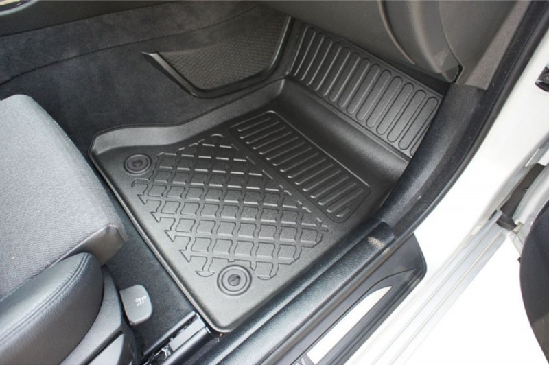 Nabízené koberce jsou vyrobeny z vysoce kvalitního odolného a flexibilního protiskluzového plastu. Vysoká kvalita použitých materiálů a přesný design zajišťují, že tvar a uložení našich koberců se nezmění ani po letech použití.Koberečky jsou bezpečné díky zabudovanému, praktickému a snadno použitelnému systému pro upevnění podlahových rohoží. Upevňovací systém je přizpůsoben značce / modelu vozidla a chrání koberec proti posuvu při jízdě. Koberce jsou vymodelované přesně podle typu daného vozu.