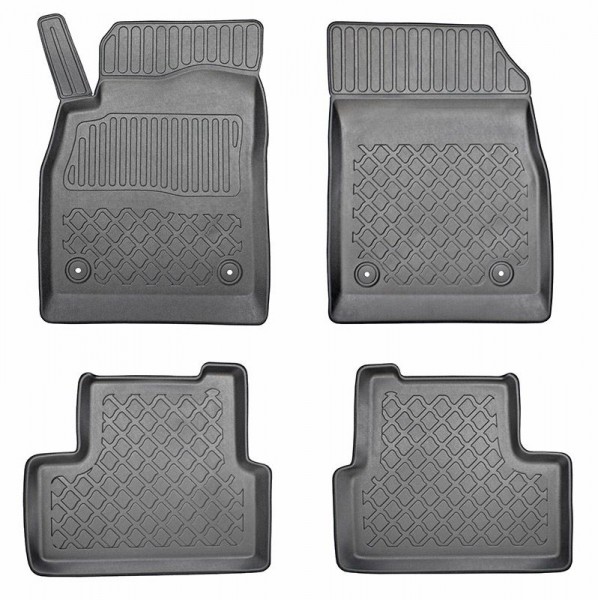 Nabízené koberce jsou vyrobeny z vysoce kvalitního odolného a flexibilního protiskluzového plastu. Vysoká kvalita použitých materiálů a přesný design zajišťují, že tvar a uložení našich koberců se nezmění ani po letech použití.Koberečky jsou bezpečné díky zabudovanému, praktickému a snadno použitelnému systému pro upevnění podlahových rohoží. Upevňovací systém je přizpůsoben značce / modelu vozidla a chrání koberec proti posuvu při jízdě. Koberce jsou vymodelované přesně podle typu daného vozu.