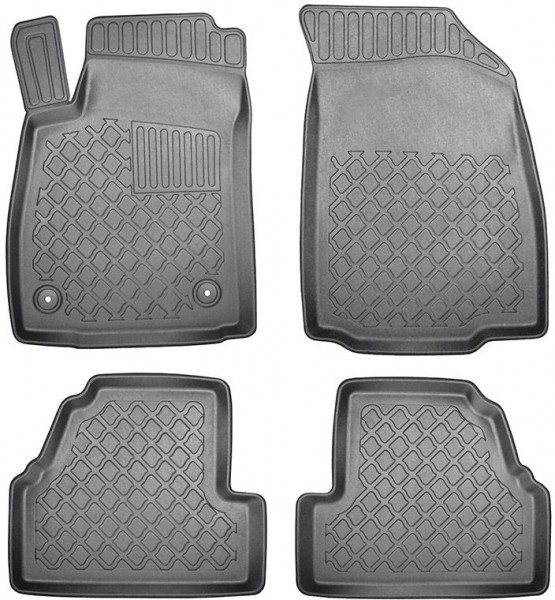 Nabízené koberce jsou vyrobeny z vysoce kvalitního odolného a flexibilního protiskluzového plastu. Vysoká kvalita použitých materiálů a přesný design zajišťují, že tvar a uložení našich koberců se nezmění ani po letech použití.Koberečky jsou bezpečné díky zabudovanému, praktickému a snadno použitelnému systému pro upevnění podlahových rohoží. Upevňovací systém je přizpůsoben značce / modelu vozidla a chrání koberec proti posuvu při jízdě. Koberce jsou vymodelované přesně podle typu daného vozu.