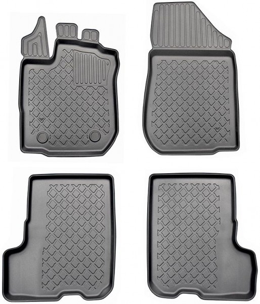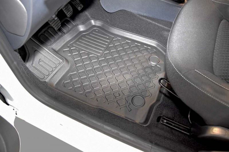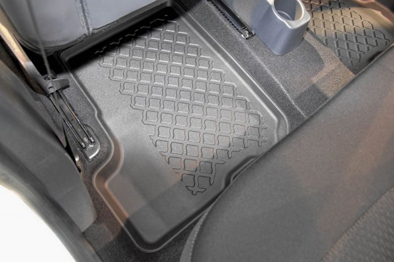 Nabízené koberce jsou vyrobeny z vysoce kvalitního odolného a flexibilního protiskluzového plastu. Vysoká kvalita použitých materiálů a přesný design zajišťují, že tvar a uložení našich koberců se nezmění ani po letech použití.Koberečky jsou bezpečné díky zabudovanému, praktickému a snadno použitelnému systému pro upevnění podlahových rohoží. Upevňovací systém je přizpůsoben značce / modelu vozidla a chrání koberec proti posuvu při jízdě. Koberce jsou vymodelované přesně podle typu daného vozu.