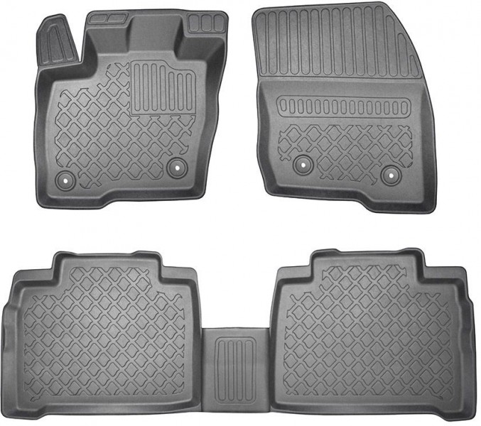 Nabízené koberce jsou vyrobeny z vysoce kvalitního odolného a flexibilního protiskluzového plastu. Vysoká kvalita použitých materiálů a přesný design zajišťují, že tvar a uložení našich koberců se nezmění ani po letech použití.Koberečky jsou bezpečné díky zabudovanému, praktickému a snadno použitelnému systému pro upevnění podlahových rohoží. Upevňovací systém je přizpůsoben značce / modelu vozidla a chrání koberec proti posuvu při jízdě. Koberce jsou vymodelované přesně podle typu daného vozu.