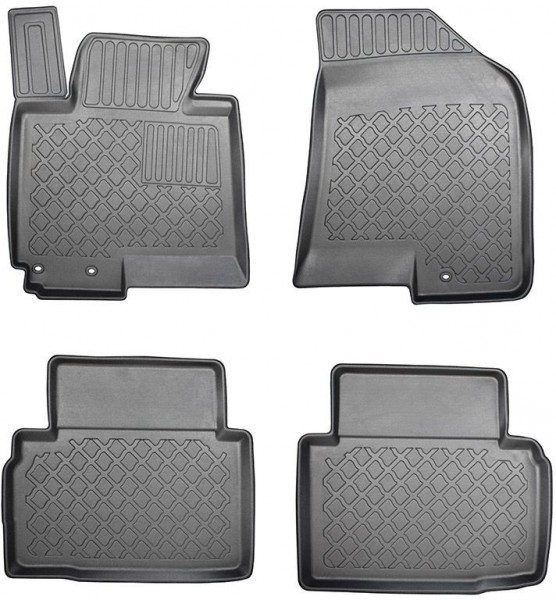 Nabízené koberce jsou vyrobeny z vysoce kvalitního odolného a flexibilního protiskluzového plastu. Vysoká kvalita použitých materiálů a přesný design zajišťují, že tvar a uložení našich koberců se nezmění ani po letech použití.Koberečky jsou bezpečné díky zabudovanému, praktickému a snadno použitelnému systému pro upevnění podlahových rohoží. Upevňovací systém je přizpůsoben značce / modelu vozidla a chrání koberec proti posuvu při jízdě. Koberce jsou vymodelované přesně podle typu daného vozu.