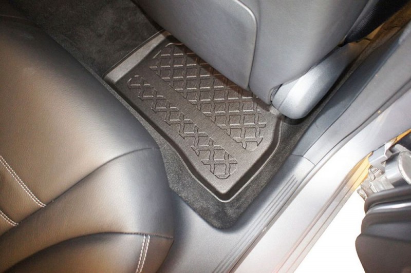 Nabízené koberce jsou vyrobeny z vysoce kvalitního odolného a flexibilního protiskluzového plastu. Vysoká kvalita použitých materiálů a přesný design zajišťují, že tvar a uložení našich koberců se nezmění ani po letech použití.Koberečky jsou bezpečné díky zabudovanému, praktickému a snadno použitelnému systému pro upevnění podlahových rohoží. Upevňovací systém je přizpůsoben značce / modelu vozidla a chrání koberec proti posuvu při jízdě. Koberce jsou vymodelované přesně podle typu daného vozu.