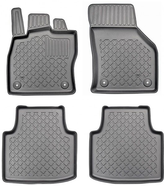 Nabízené koberce mají vysokou ochrannou hranu a jedinečnou charakteristickou povrchovou strukturu, díky níž je účinně chráněna podlaha vozu proti písku, vodě, sněhu nebo blátu.