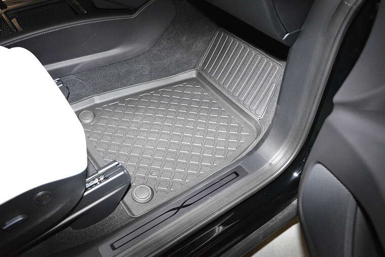 Nabízené koberce jsou vyrobeny z vysoce kvalitního odolného a flexibilního protiskluzového plastu. Vysoká kvalita použitých materiálů a přesný design zajišťují, že tvar a uložení našich koberců se nezmění ani po letech použití.Koberečky jsou bezpečné díky zabudovanému, praktickému a snadno použitelnému systému pro upevnění podlahových rohoží. Upevňovací systém je přizpůsoben značce / modelu vozidla a chrání koberec proti posuvu při jízdě. Koberce jsou vymodelované přesně podle typu daného vozu.