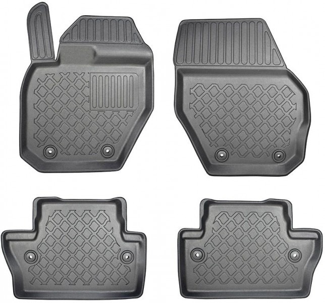 Nabízené koberce jsou vyrobeny z vysoce kvalitního odolného a flexibilního protiskluzového plastu. Vysoká kvalita použitých materiálů a přesný design zajišťují, že tvar a uložení našich koberců se nezmění ani po letech použití.Koberečky jsou bezpečné díky zabudovanému, praktickému a snadno použitelnému systému pro upevnění podlahových rohoží. Upevňovací systém je přizpůsoben značce / modelu vozidla a chrání koberec proti posuvu při jízdě. Koberce jsou vymodelované přesně podle typu daného vozu.