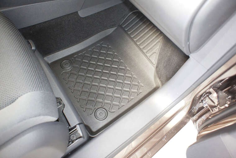 Nabízené koberce jsou vyrobeny z vysoce kvalitního odolného a flexibilního protiskluzového plastu. Vysoká kvalita použitých materiálů a přesný design zajišťují, že tvar a uložení našich koberců se nezmění ani po letech použití.Koberečky jsou bezpečné díky zabudovanému, praktickému a snadno použitelnému systému pro upevnění podlahových rohoží. Upevňovací systém je přizpůsoben značce / modelu vozidla a chrání koberec proti posuvu při jízdě. Koberce jsou vymodelované přesně podle typu daného vozu.