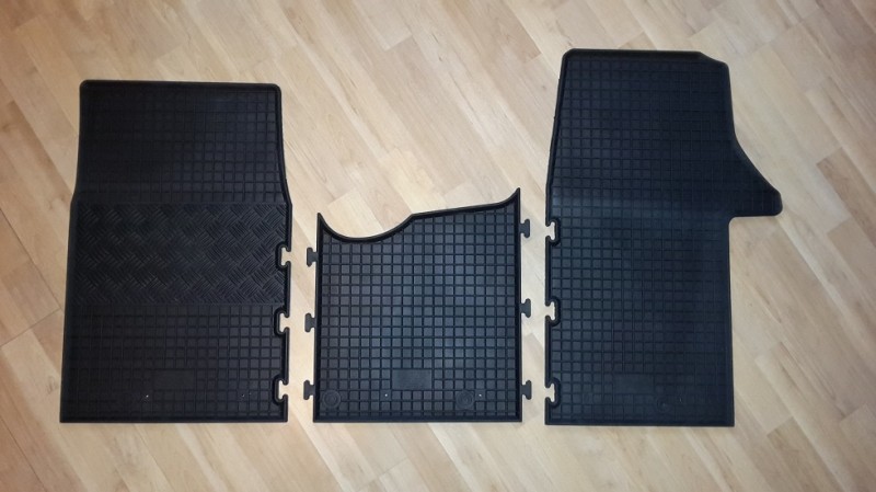 Koberce jsou tvořeny ze 3kusů spojené puzzlemy k sobě jako jeden kus. Spojení puzzlemi má výhodu v tom, že pokud potřebujete vytřepat část koberce pouze u řidiče, jednoduše tu část odpojíte a nemusíte vytahovat celý koberec jako celek.