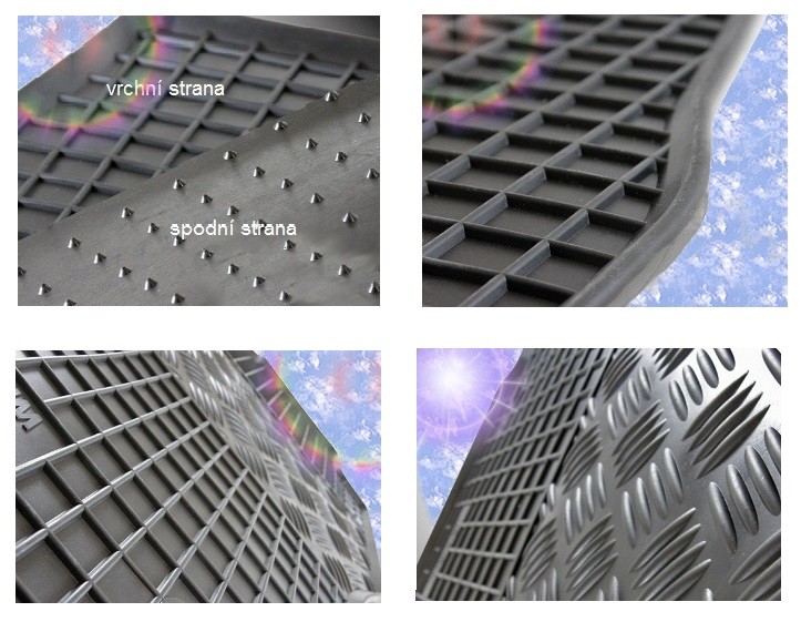 Kvalitní pryžové koberce, přesně tvarované na daný typ vozu od českého kvalitního výrobce.