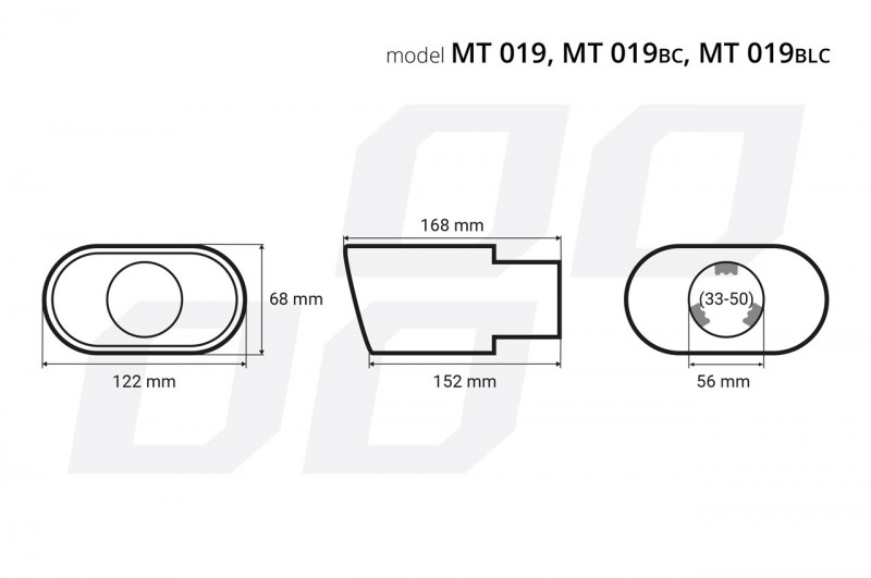 Vývod ovál 122x68mm. Vstup 56mm.
