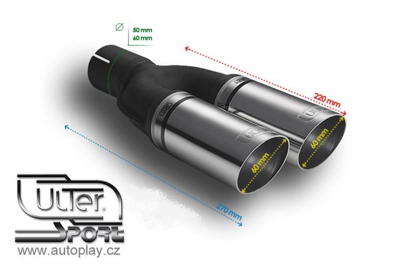 Univerzální koncovka výfuku z ušlechtilé oceli od firmy Ulter Sport zabývající se již řadu let výrobou tlumičů výfuku a koncovek.