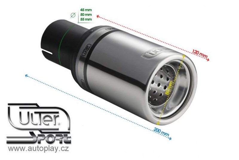 Univerzální koncovka výfuku z ušlechtilé oceli od firmy Ulter Sport zabývající se již řadu let výrobou tlumičů výfuku a koncovek.